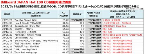 この記事では、2006年以降15年以上もの期間に渡って継続し、今なお僅かに残存している「日本音楽チャートのCD偏重問題」の2023年以降の現状を整理し解決案を示す。 「日本音楽チャートのCD偏重問題」の内容や歴史に関しては以下記事で詳述している。 billion…